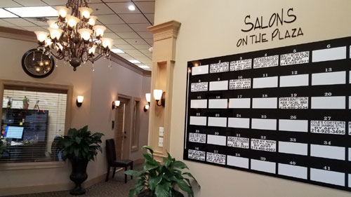 A luxurious ambiances greets all clients that walk in the door. With brilliant lighting, an upscale interior appearance, multiple seating areas, your clients will feel comfort around every corner. A receptionist is provided to greet all customers that enter Salons on the Plaza. A professional receptionist will help all customers find their salon owners while simultaneously handling any problems that may arise. Low lease rates help you keep your overhead down while keeping more profits for you.